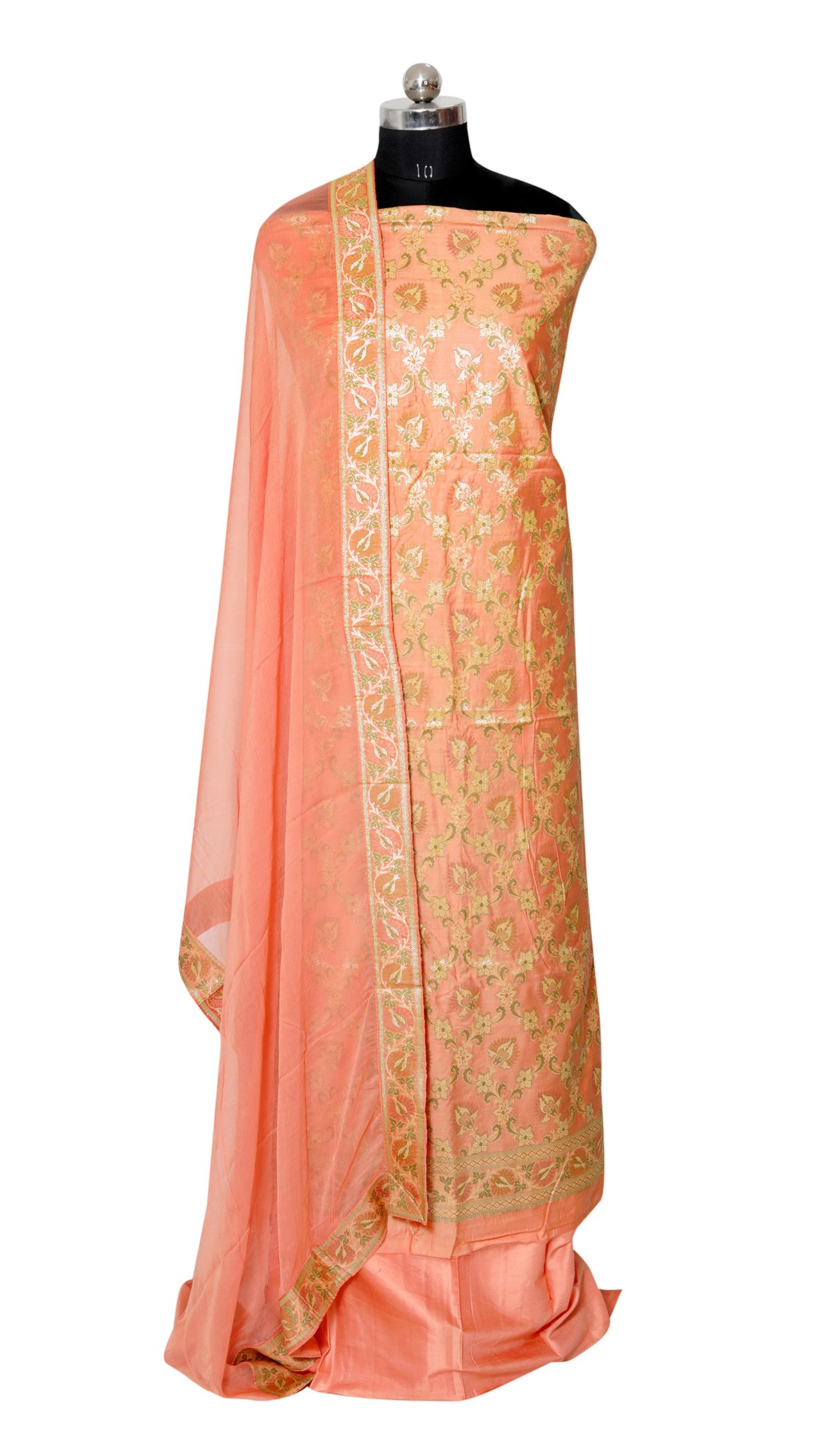 HomeBuy Banarasi Silk Suits Online Store in Varanasi, Handloom Suit, Embroidery Suit OnlineBanarasi Silk Suit Chanderi Khaddi Suit with Chiffon Dupatta Orange