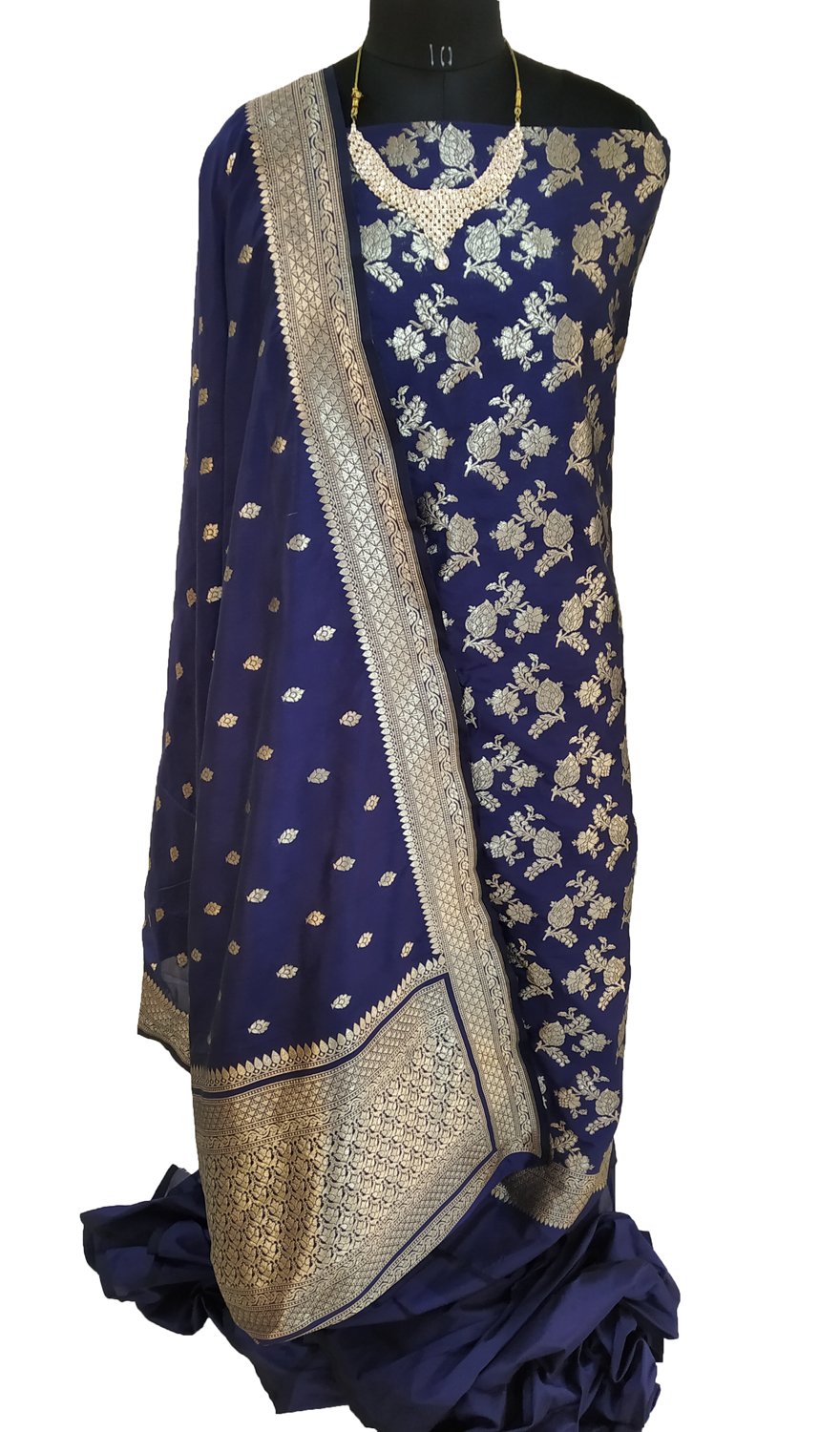 HomeBuy Banarasi Silk Suits Online Store in Varanasi, Handloom Suit, Embroidery Suit OnlineBanarasi Silk Suit Latest Banarasi Suit Dupatta Golden Navy Blue